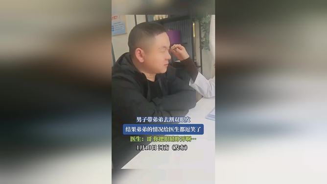 河南开封这两天出了个让人笑到打鸣的事儿!40岁的大哥带着弟弟去割双眼皮,结果临上手术台时弟弟怂了,捂着眼睛说啥也不肯躺,大哥一咬牙:“你不做我做!”转头就给自己安排了全套手术。现在全家见了他就笑到直不起腰,连小区广场舞大妈都追着问:“大兄弟,你这双眼皮在哪儿做的?看着比你弟精神多啦!”